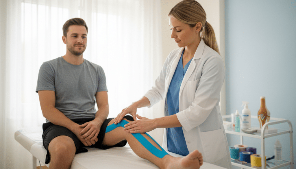 | Funktionelle Unterstützung | Verbesserung der Muskelkontraktion, Unterstützung der Gelenkstabilität, Korrektur von Bewegungsmustern | Knie (Patellaführung), Schulter (Rotatorenmanschette), Sprunggelenk (Stabilität) | Erfordert präzise Anlegetechniken basierend auf anatomischen Gegebenheiten |